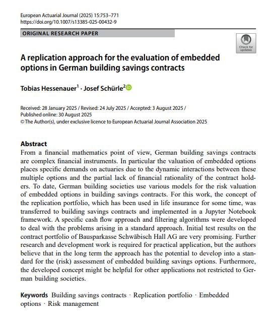 • En: European Actuarial Journal. - Cham, Switzerland : Springer Nature Switzerland AG, 2021-2022. - 11/08/2025 Volume 15 - Number 2 - August 2025 , p. 753 - 771