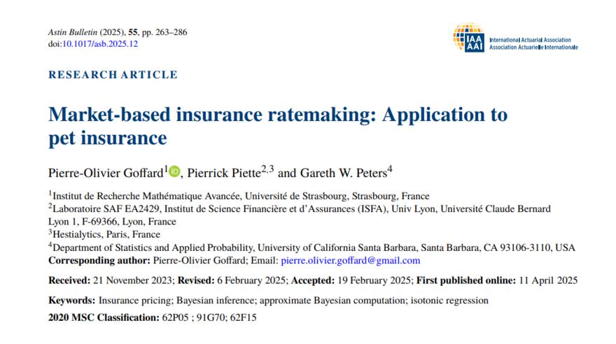 - En: Astin bulletin. - Belgium : ASTIN and AFIR Sections of the International Actuarial Association = ISSN 0515-0361. - 12/05/2025 Volume 55 Issue 2 - may 2025 , p. 263 - 286