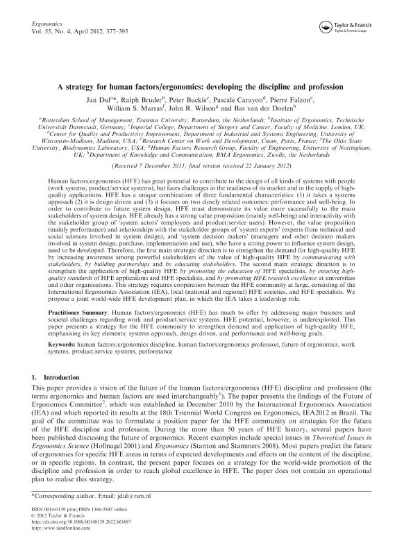 • En: Ergonomics : the international journal of research and practice in human factors and ergonomics. - Oxon [United Kingdom] : Taylor & Francis, 2010- = ISSN 0014-0139. - 02/04/2012 Volumen 55 Número 4 - abril 2012