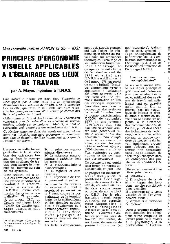 Principes d'ergonomie visuelle applicables a l'éclairage des lieux de travail : une nouvelle...