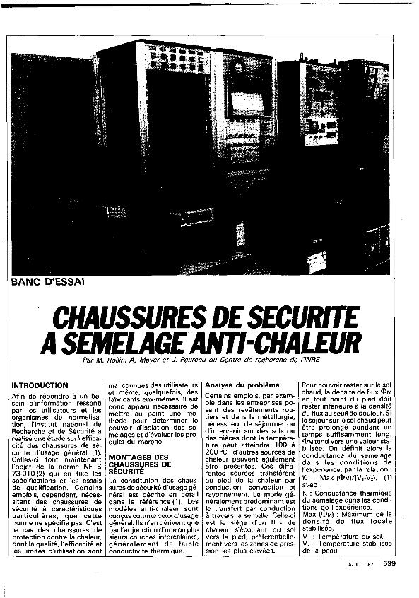 En: Travail & sécurité. - Paris. - nº 7-8, Juillet-Aout 1982 ; p. 379-387