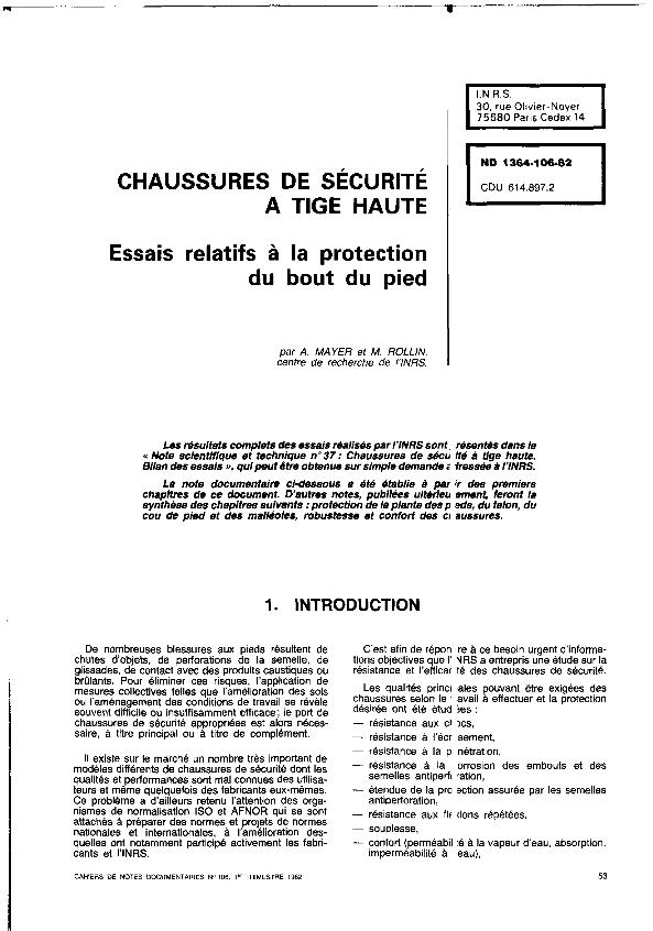 Chaussures de sécurité à tige haute : essais relatifs à la protection de la plante et des autres...