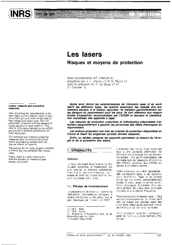 Les Lasers : risques et moyens de protection
