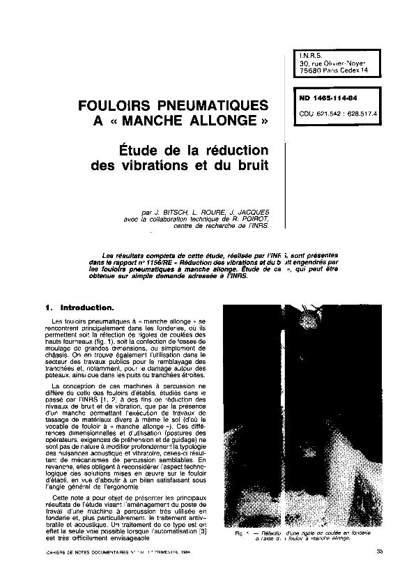 Fouloirs pneumatiques à "manche allonge" : étude de la réduction des vibrations et du bruit