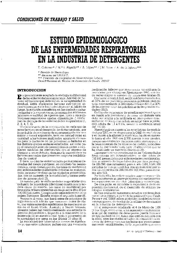 Estudio epidemiológico de las enfermedades respiratorias en la industria de detergentes