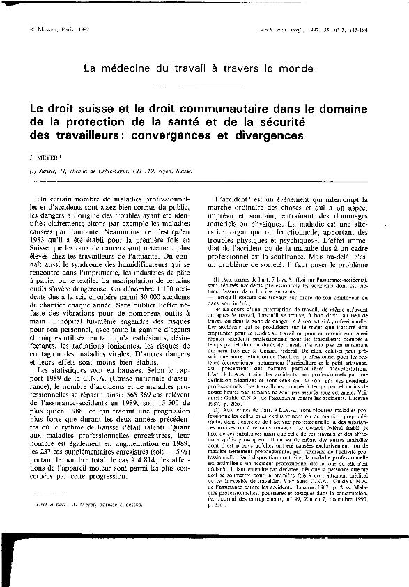 En: Travail & sécurité. - Paris. - nº 510, Mars 1993 ; p. 177-191