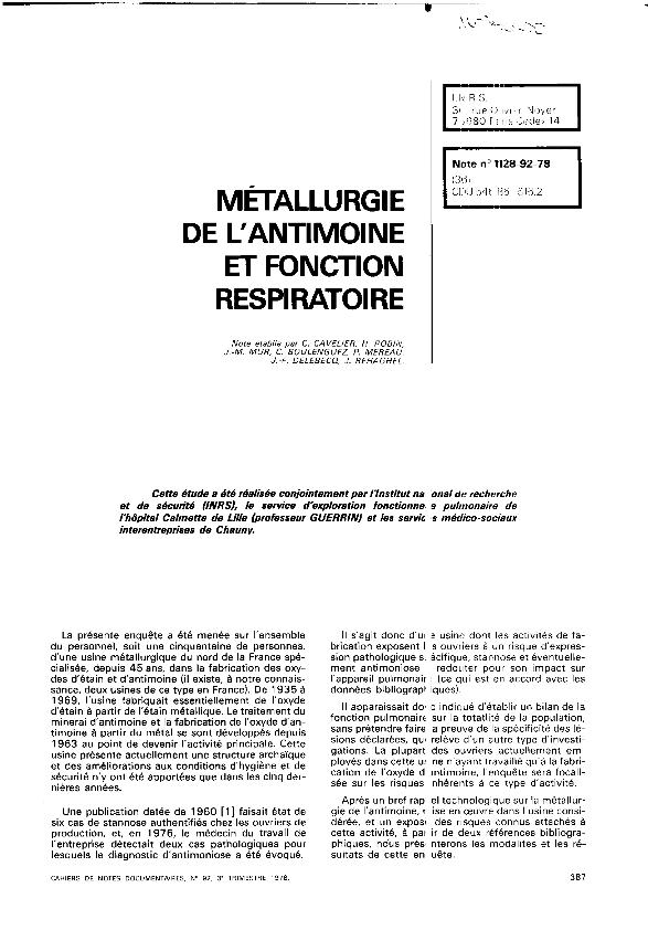 Métallurgie de l'antimoine et fonction respiratoire