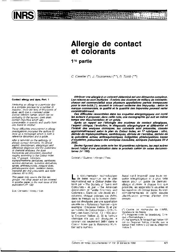 Allergie de contact et colorants : 1re. partie