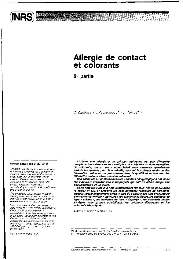 Allergie de contact et colorants : 2e. partie