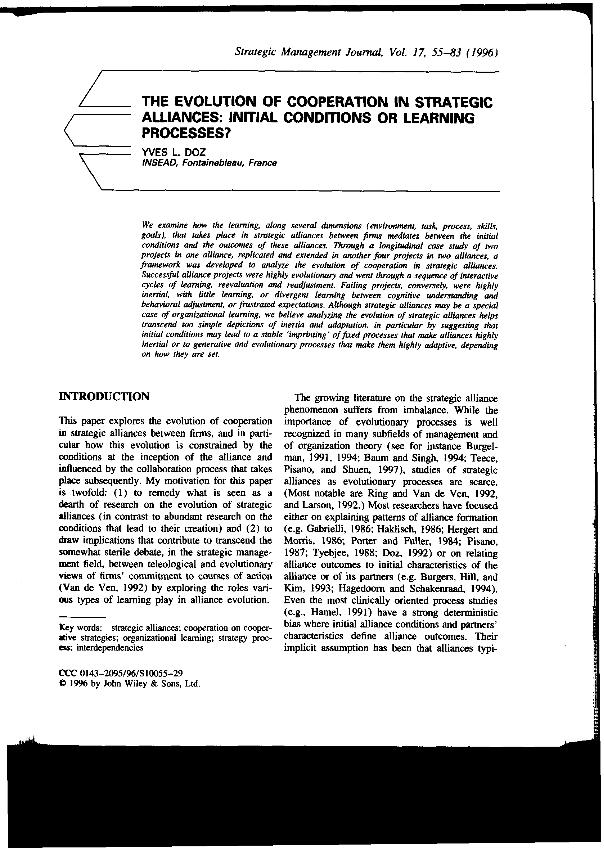 The Evolution of cooperation in strategic alliances : initial conditions or learning processes?