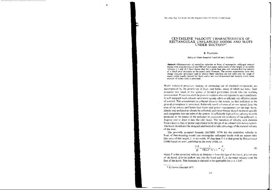 Centreline velocity characteristics of rectangular unflanged hoods and slots under suction