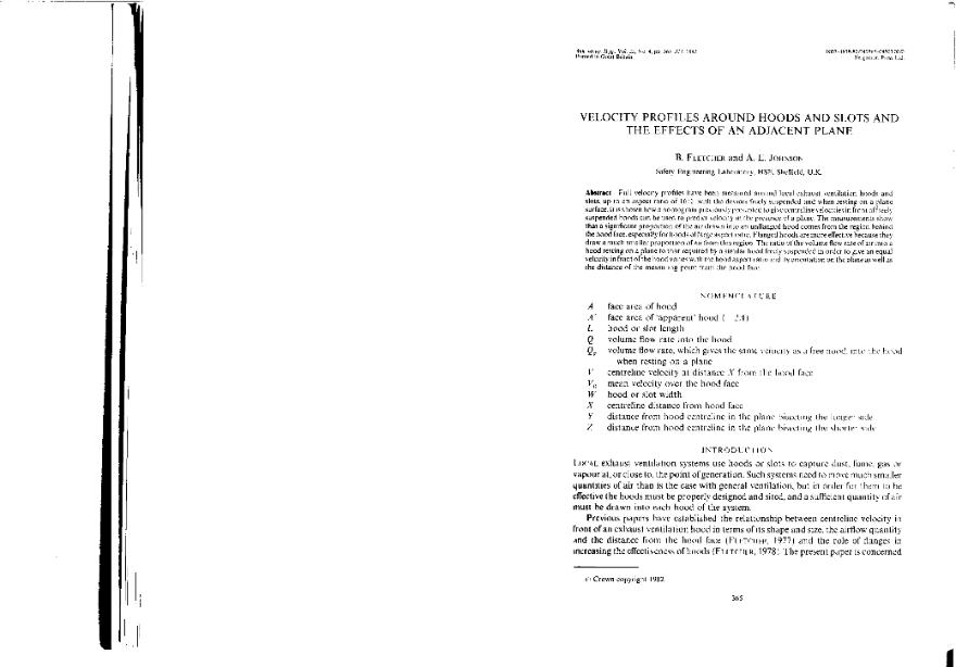 Velocity profiles around hoods and slots na the effects of an adjacent plane