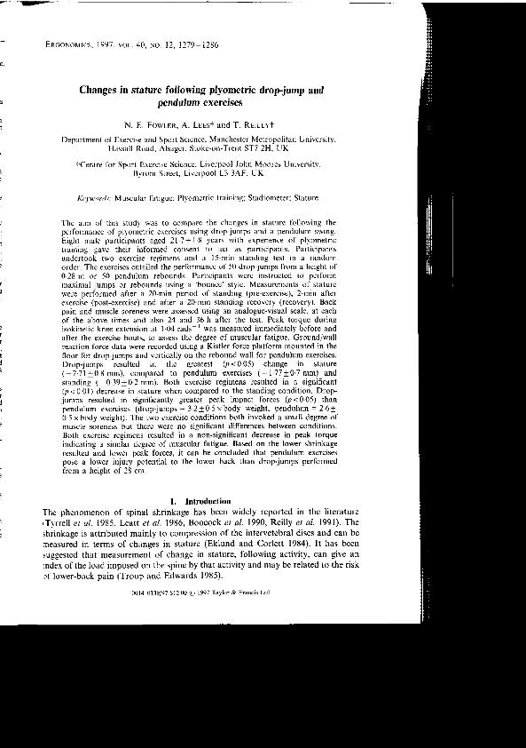 Changes in stature following plyometric drop-jump and pendulum exercises