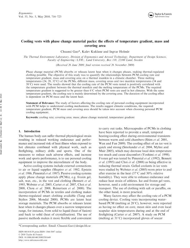 Cooling vests with phase change material packs-the effects of temperature gradient, mass and...