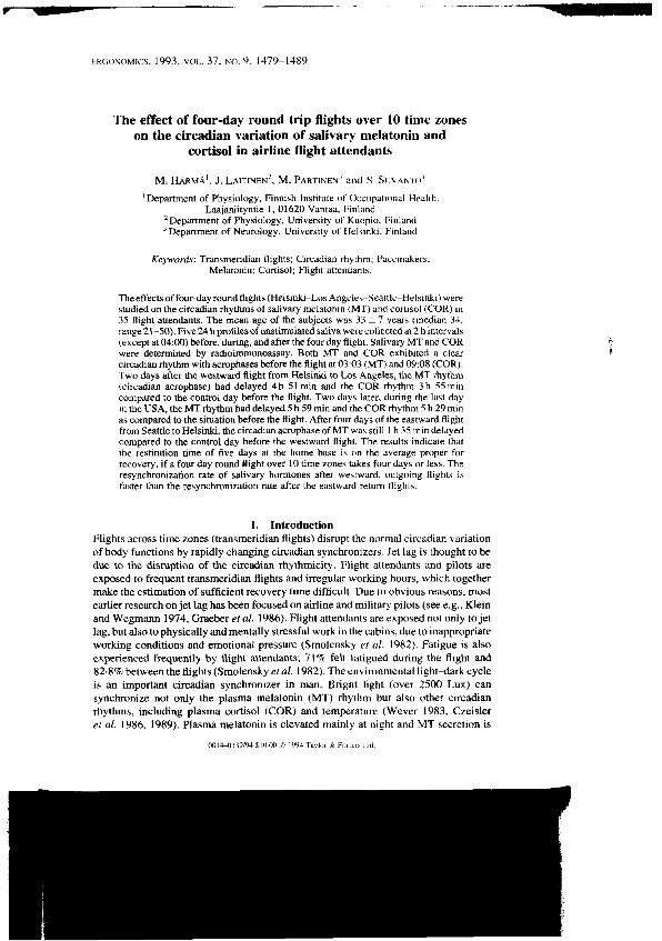 The Effect of four-day round trip flights over 10 time zones on the circadian variation of...