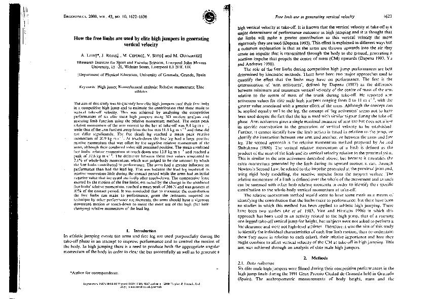 How the free limbs are used by elite high jumpers in generating vertical velocity