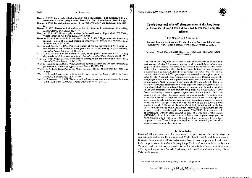 Touch-down and take-off characteristics of the long jump performance of world level above- and...