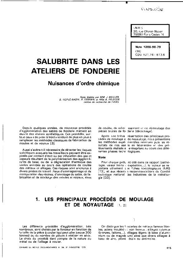 Salubrité dans les ateliers de fonderie : nuisances d'ordre chimique