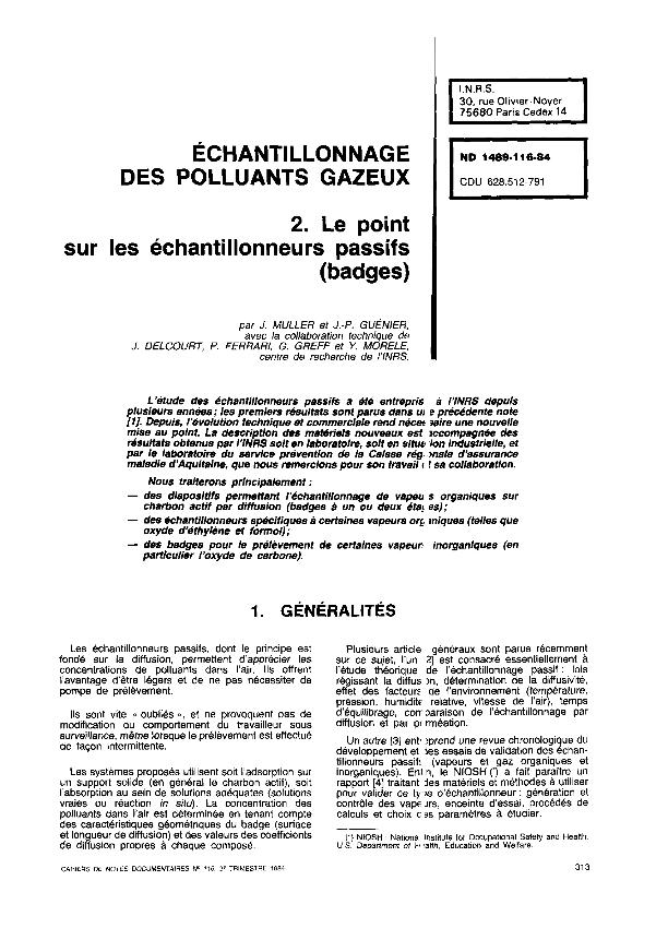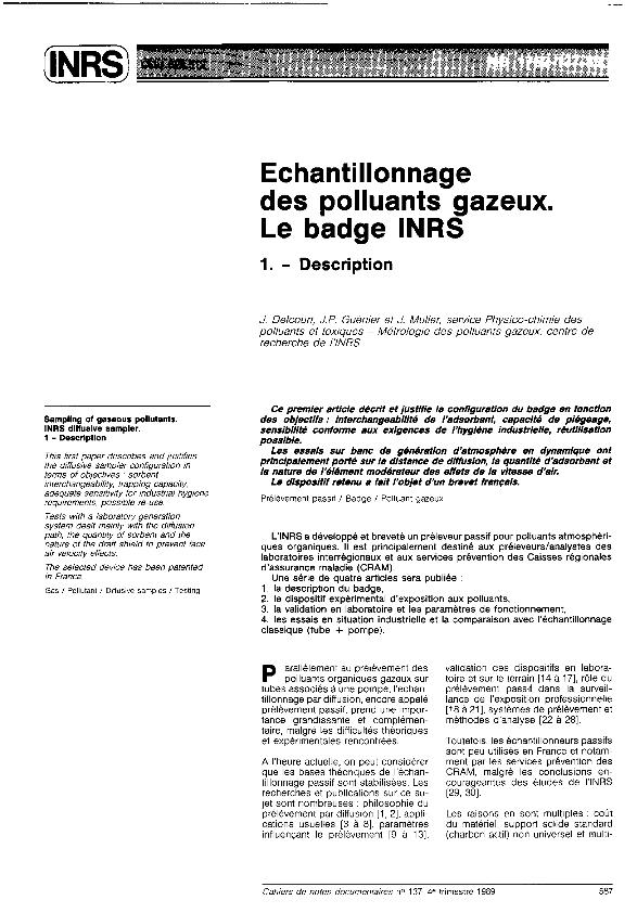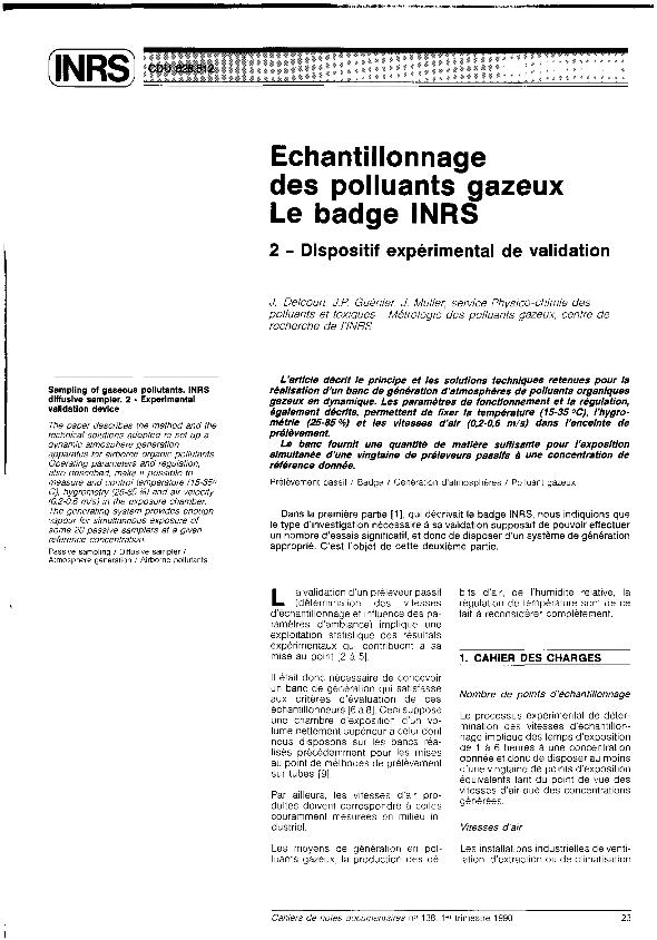 Échantillonnage des polluants gazeux : le badge INRS : dispositif expérimental de validation