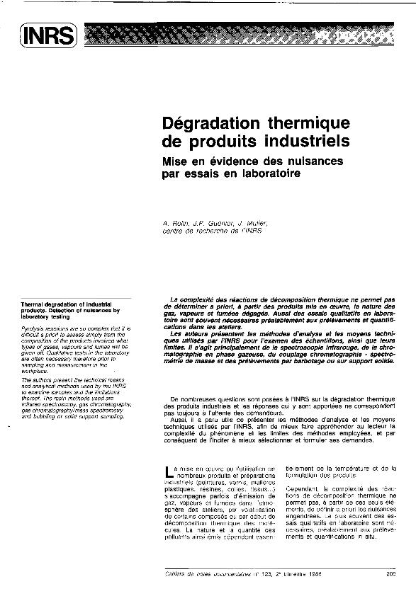 Dégradation thermique de produits industriels : mise en évidence des nuisances par essais en...