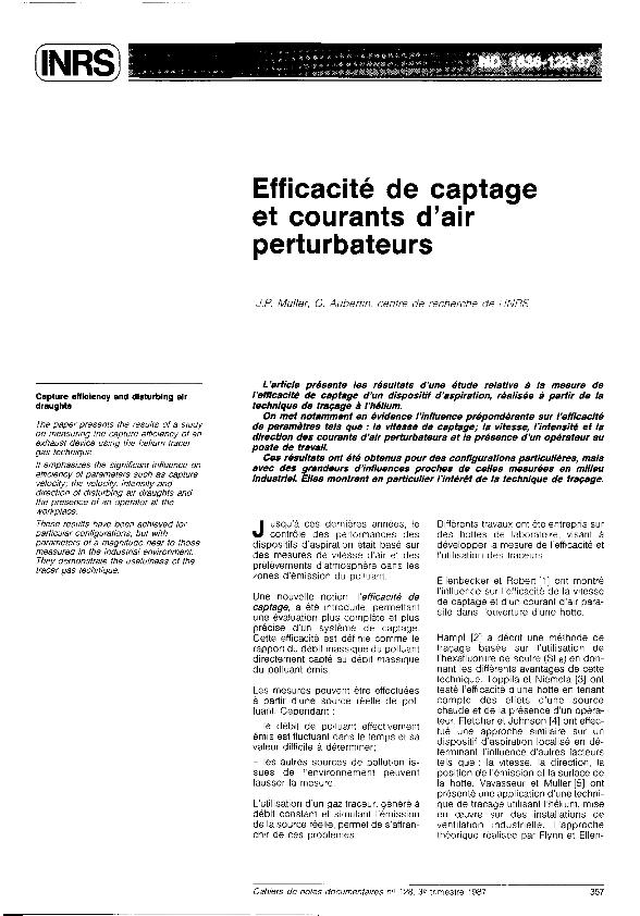 Efficacité de captage et courants d'air perturbateurs
