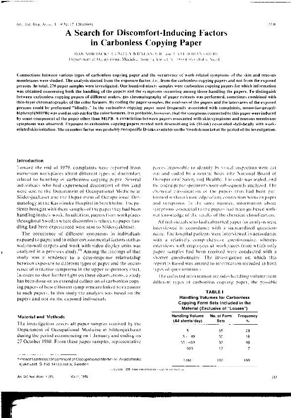 A Search for discomfort inducing factors in carbonless copying paper