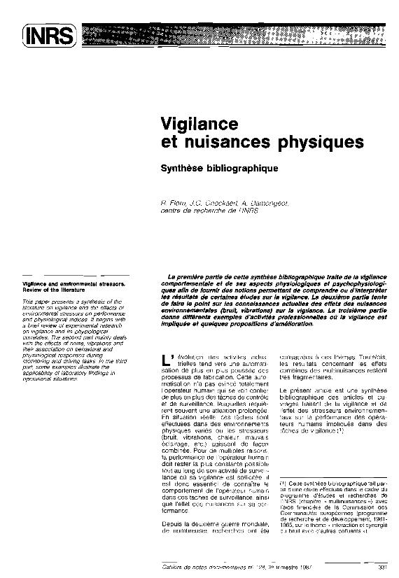 Vigilance et nuisances physiques : effets de l'association du bruit et des vibrations sur la...