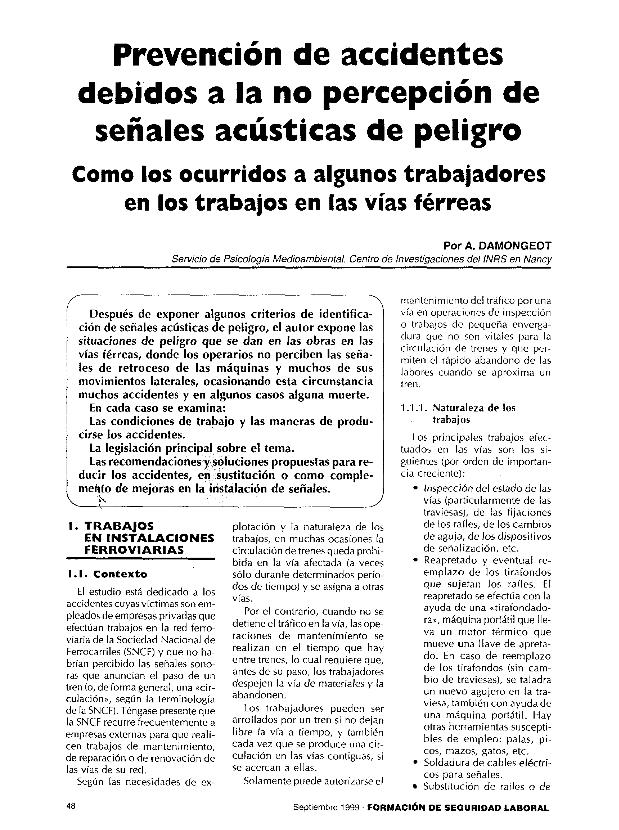Prevención de accidentes debidos a la no percepción de señales acústicas de peligro : como los...