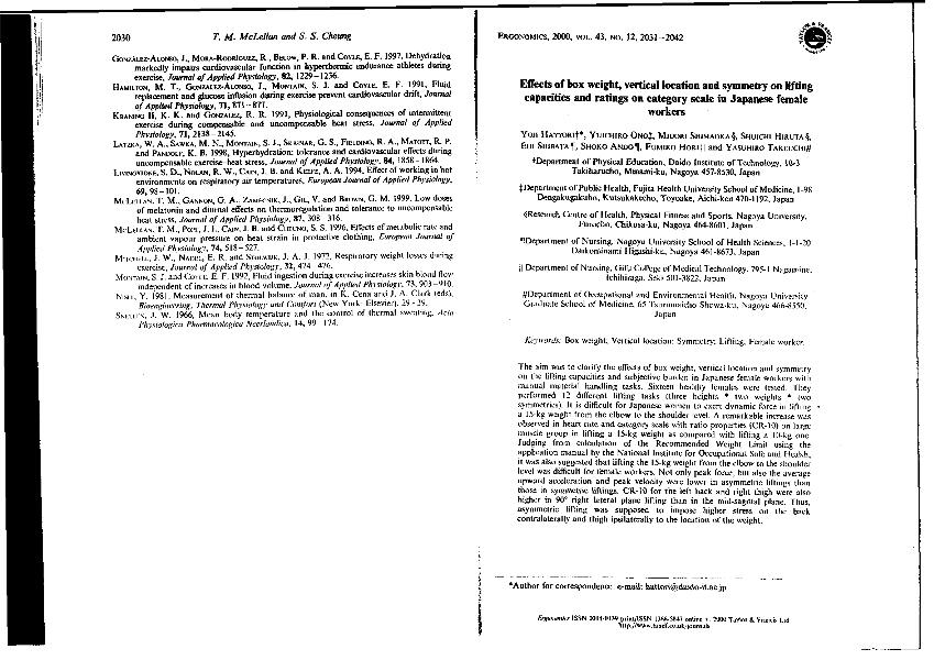 Effects of asummetric dynamic and isometric liftings on strength/force and rating of perceived...
