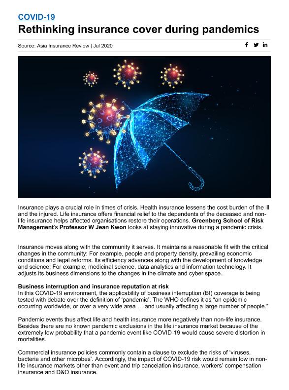 En: Asia insurance review. - Singapore : Ins Communications Pte Ltd., 2009- = ISSN 0218-2696. - 01/07/2020 Número 7 - julio 2020 , p. 40-41