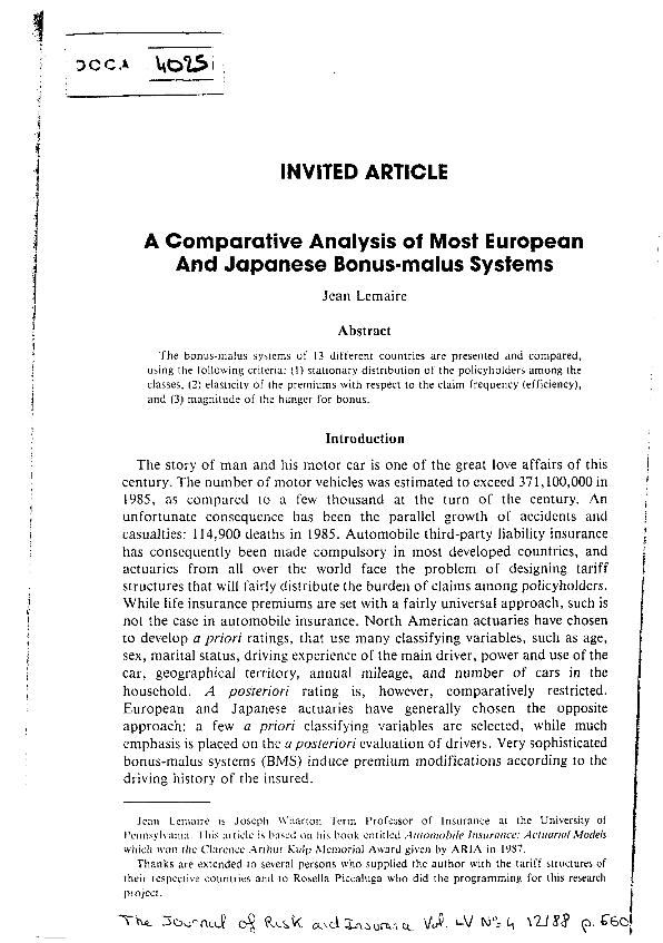 - En: Geneva papers on risk and insurance : issues and practice. - Geneva : The Geneva Association, 1976- = ISSN 1018-5895. - 01/07/1981 Tomo 6 Número 3 - 1981