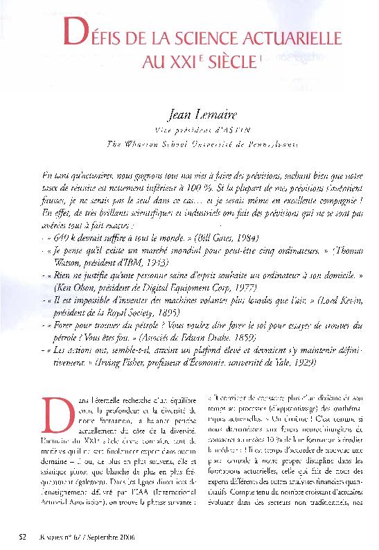 Commentaires sur «Les Trois Marchés de l'Assurance»
