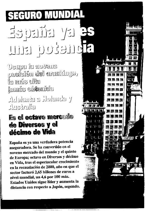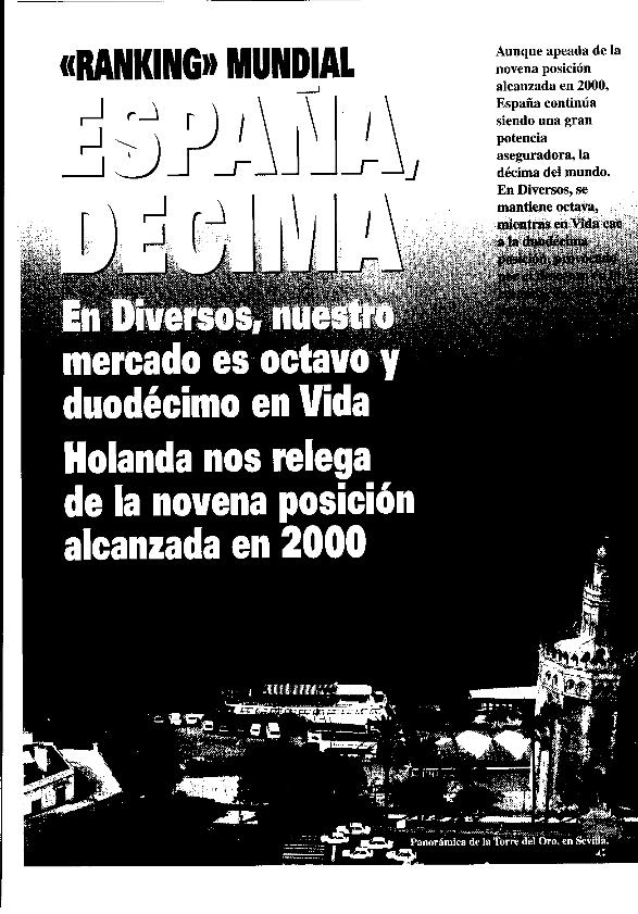 Seguro mundial : España ya es una potencia : ocupa la novena posición del "ranking", la más alta...
