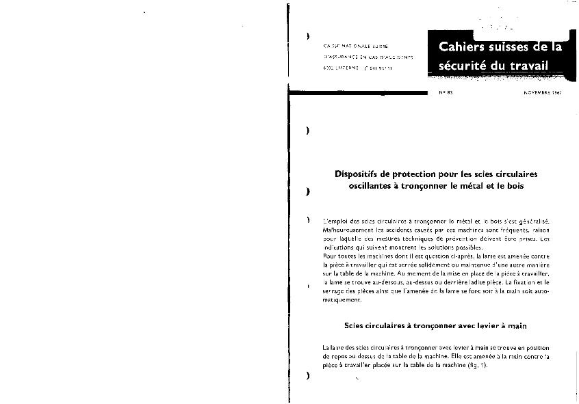 En: Cahiers suisses de la sécurité du travail. - Lucerne. - nº 83, novembre 1967 ; 20 p.