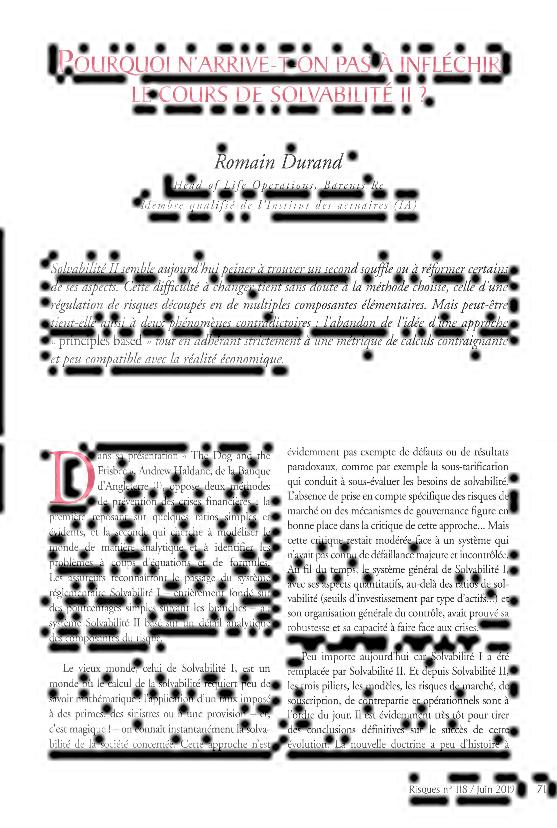 - En: Risques : les cahiers de l'assurance. - Paris : FFSA, 1990- = ISSN 1152-9253. - 03/12/2012 Número 92 - diciembre 2012