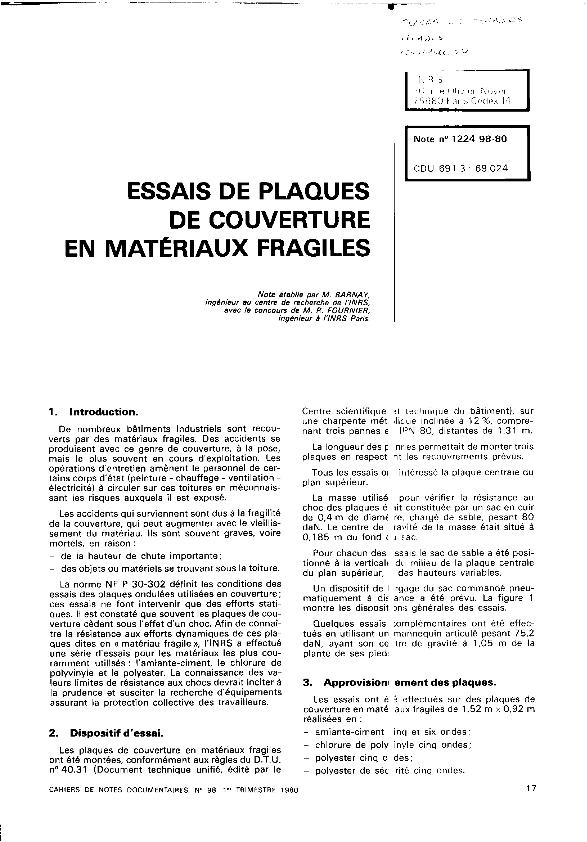 • En: Cahiers de notes documentaires. - Paris. - nº 98, 1er trimestre 1980 ; p. 17-22