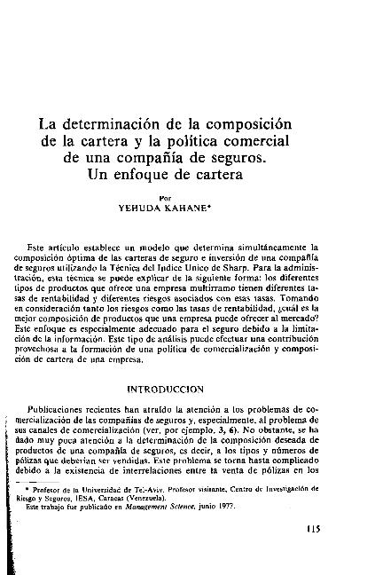 La Determinación de la composición de la cartera y la política comercial de una compañía de...