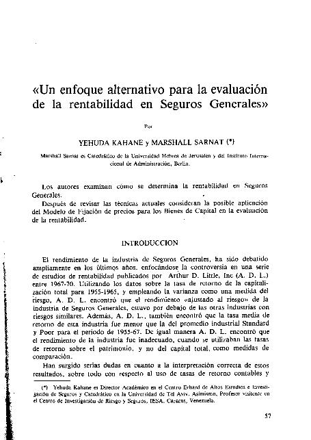 Un Enfoque alternativo para la evaluación de la rentabilidad en seguros generales