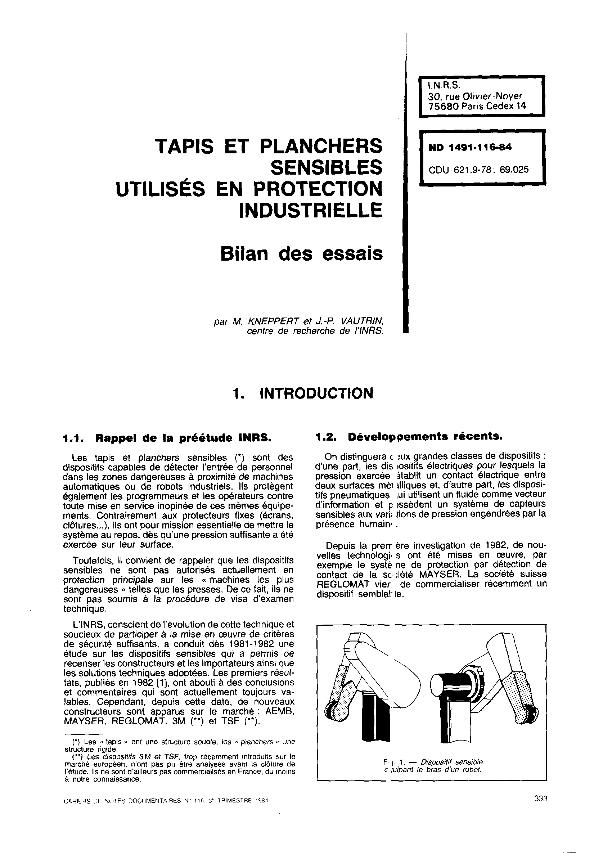 Tapis et planchers sensibles utilisés en protection industrielle : bilan des essais