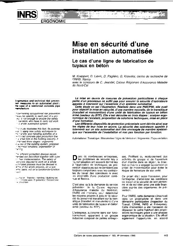 Mise en sécurité d'une installation automatisée : le cas d'une ligne de fabrication de tuyaux en...