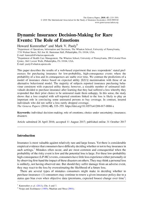 - En: Geneva papers on risk and insurance : issues and practice. - Geneva : The Geneva Association, 1976- = ISSN 1018-5895. - Tomo 14 Número 1 - 1989