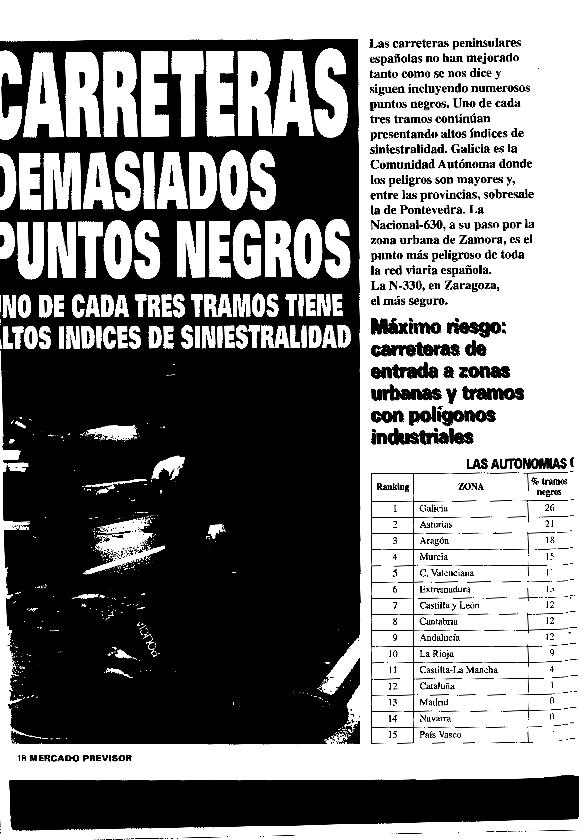 Carreteras : demasiados puntos negros : uno de cada tres tramos tiene altos índices de...