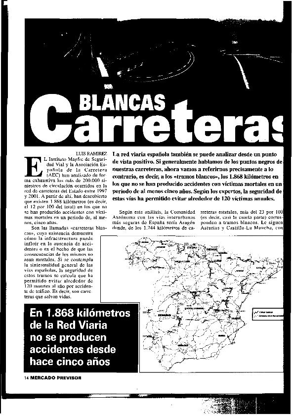 Carreteras blancas : se calcula que evitan alrededor de 120 víctimas mortales al año