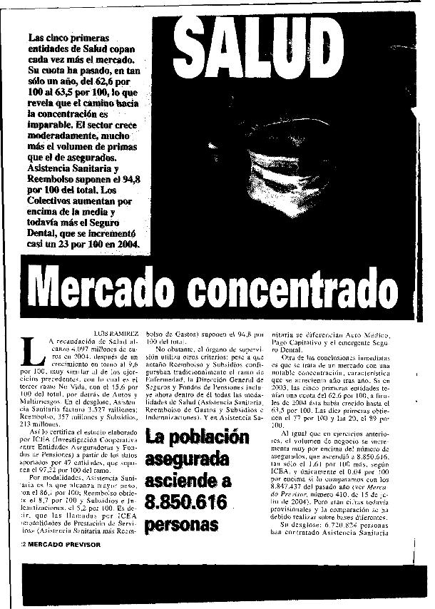 En: Mercado previsor. - Madrid : Ediciones de Negocios, S.L., 1982-2025. - nº 424, 15 de marzo 2005 ; [1] p.