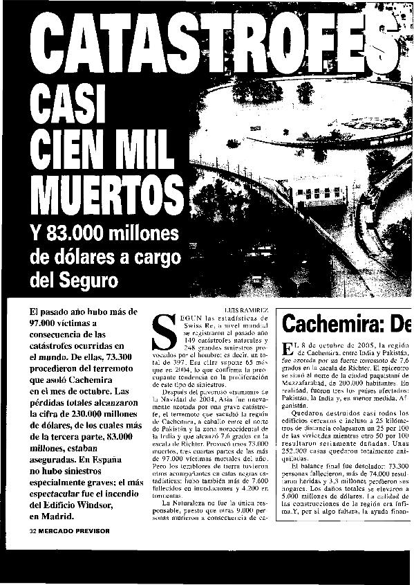Catástrofes : casi cien mil muertos y 83.000 millones de dólares a cargo del seguro