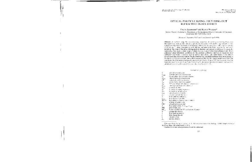 Optical particle sizing : filtering out refractive index effect