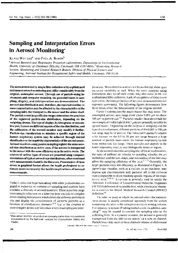 En: American Industrial Hygiene Association journal. - Akron, Ohio. - Vol. 51, nº 3, March 1990 ; p. 160-168