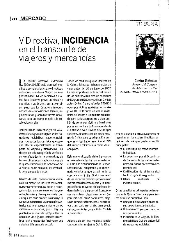 V Directiva, incidencia en el transporte de viajeros y mercancias