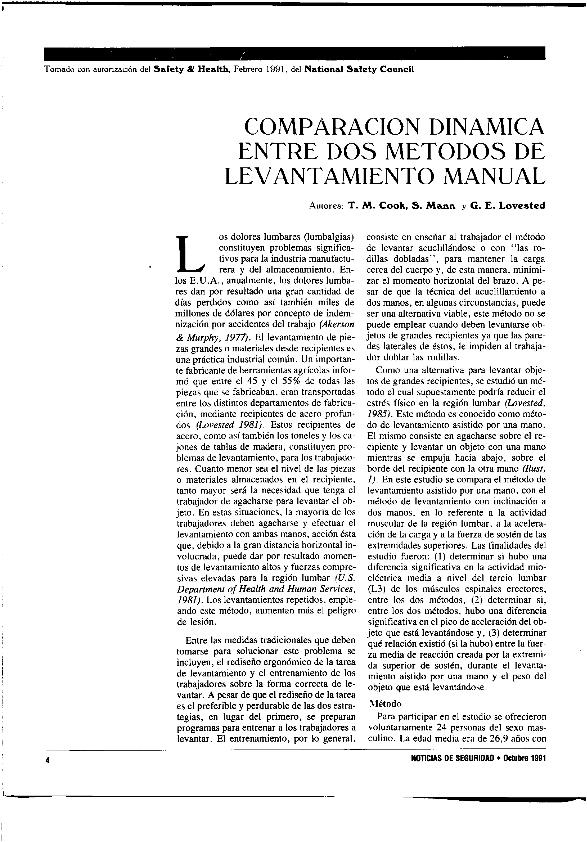 Comparación dinámica entra dos métodos de levantamiento manual