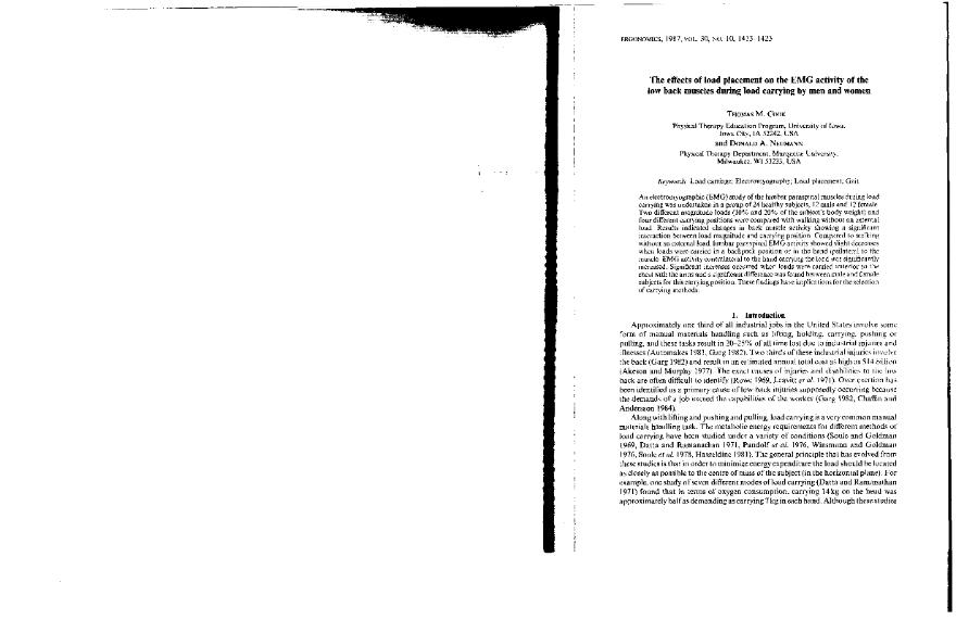 The Effects of load placement on the EMG activity of the low back muscles during load carrying by...